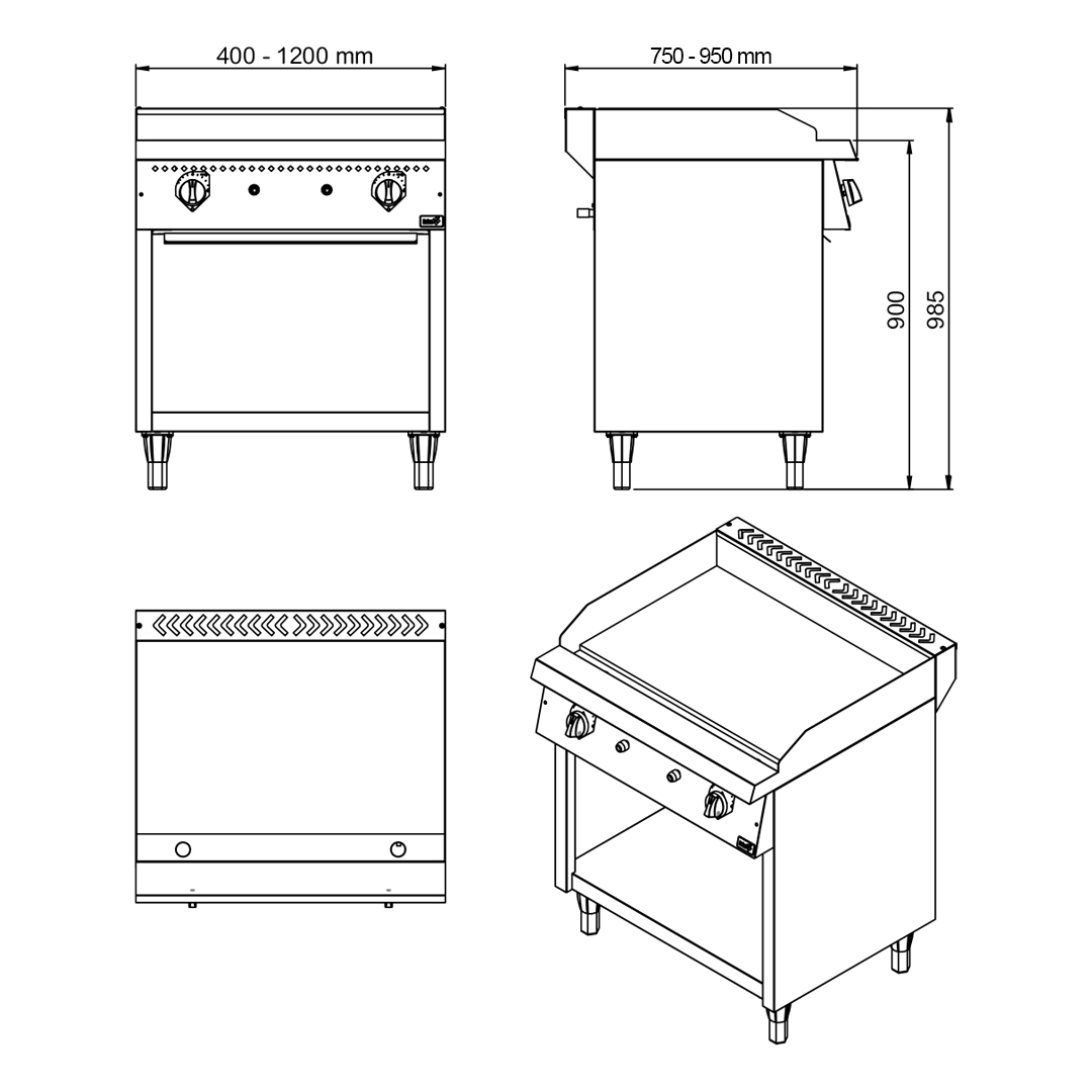 Chapa Quente a Gás de Gabinete com portas – 1200x750mm – Gold Line